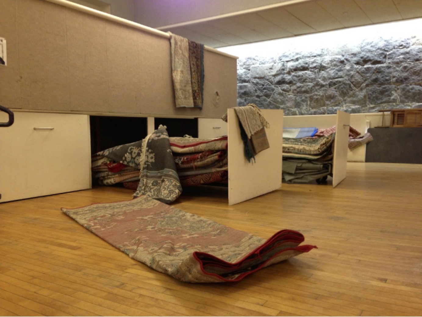 “My house shall be called a house of prayer for all.” (Isaiah 56:7–8). Study of a recurring temporary prayer space within a church basement, downtown Boston. Photo by Somayeh Chitchian, Fall 2012.